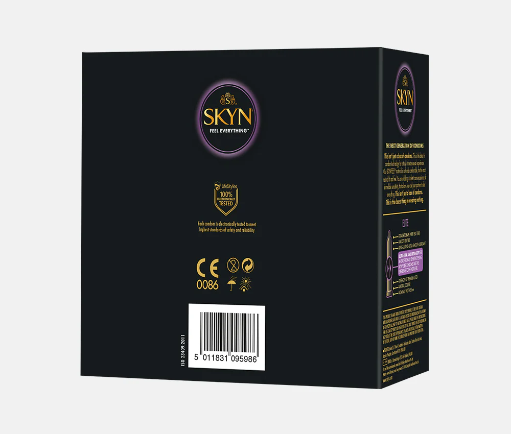 - 50 condoms supplied as 5 × SKYN® Elite 10 piece packs