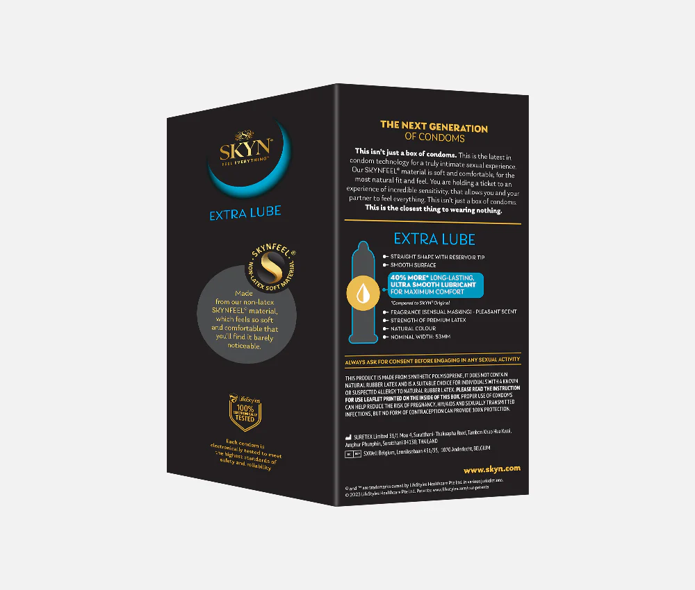 - 60 condoms supplied as 6 × SKYN® Extra Lube 10 piece packs