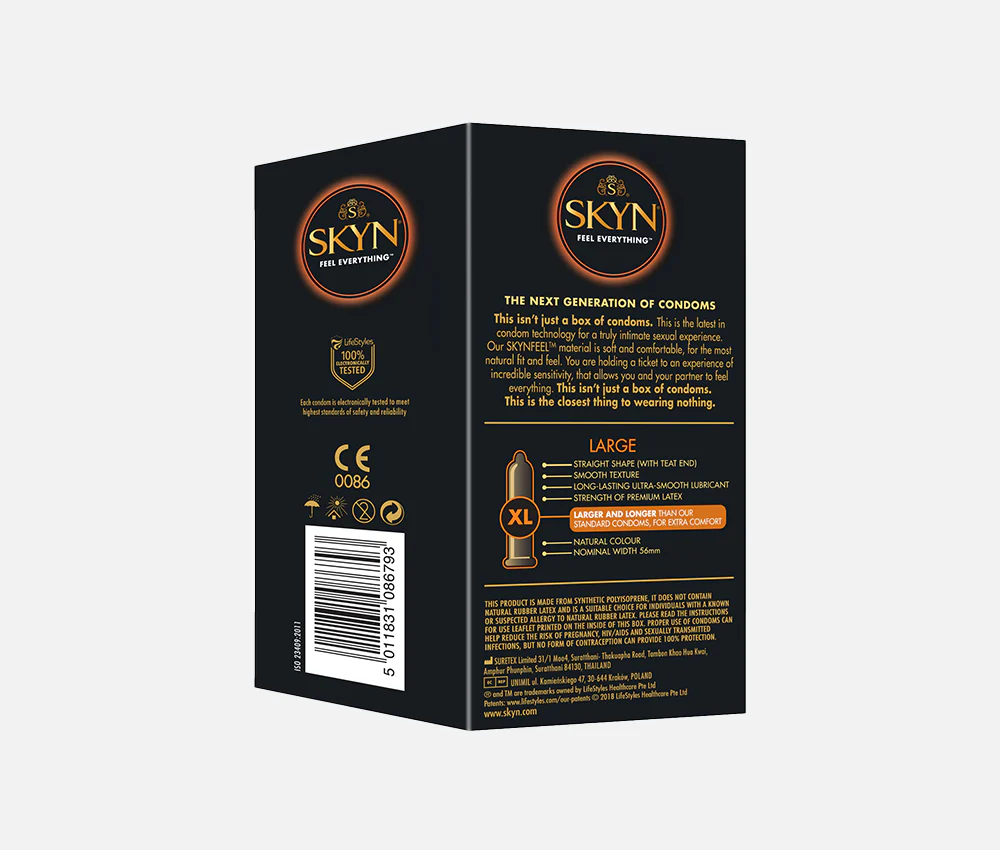 - 50 condoms supplied as 5 × SKYN® Large 10 piece packs