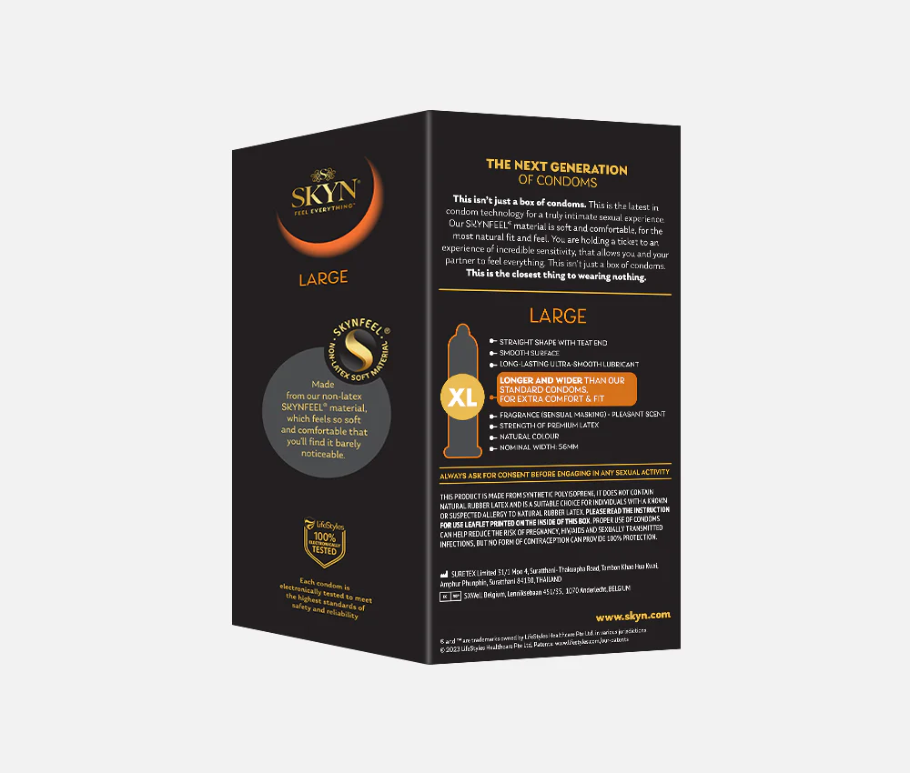 - 50 condoms supplied as 5 × SKYN® Large 10 piece packs